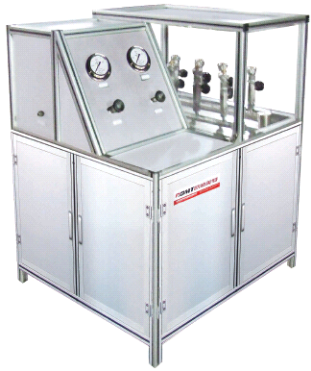 Пневматический жидкостный бустерный насос является основой системы наддува. Пользователи устанавливают тестовое давление и время удержания давления с помощью компьютерной программы или ПЛК, а затем запустить оборудование. Пневматический пропорциональный клапан управления давление газа привода, и соответствующая жидкость высокого давления выводится и проводит испытания на избыточное давление и утечку для пружинной трубки манометра сборка.